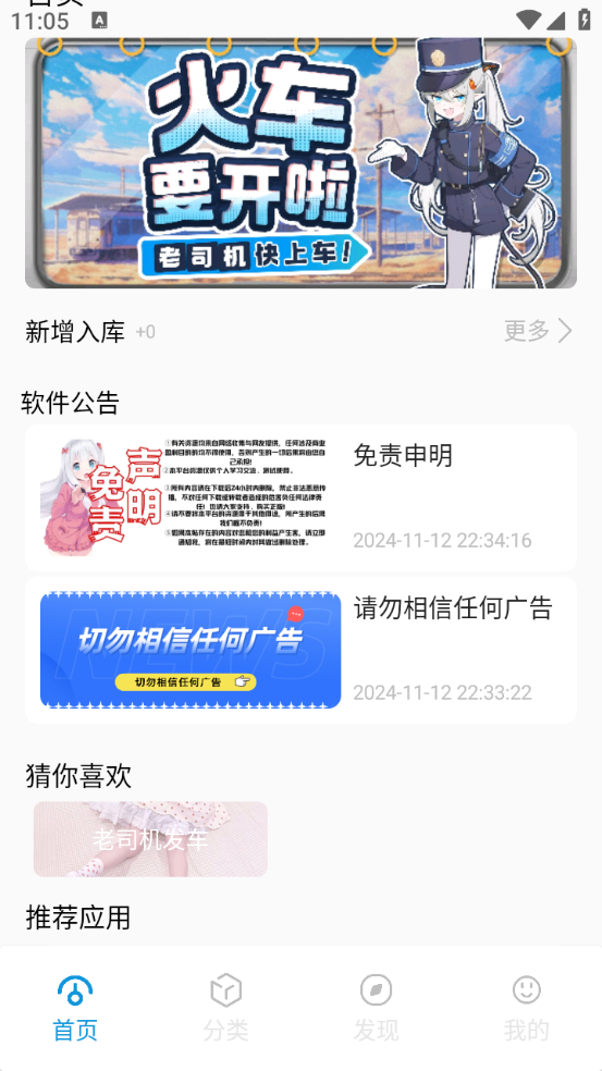 用户进入首页页面后,系统会为其呈现新增入库的应用以及推荐的应用。