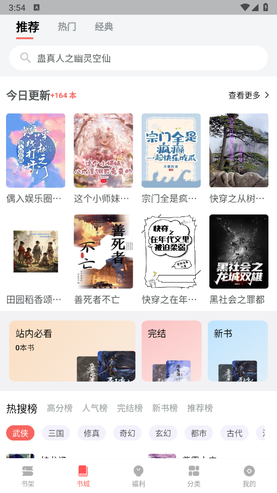 进入到“书城”页面,有当下最新最热门的小说资源。