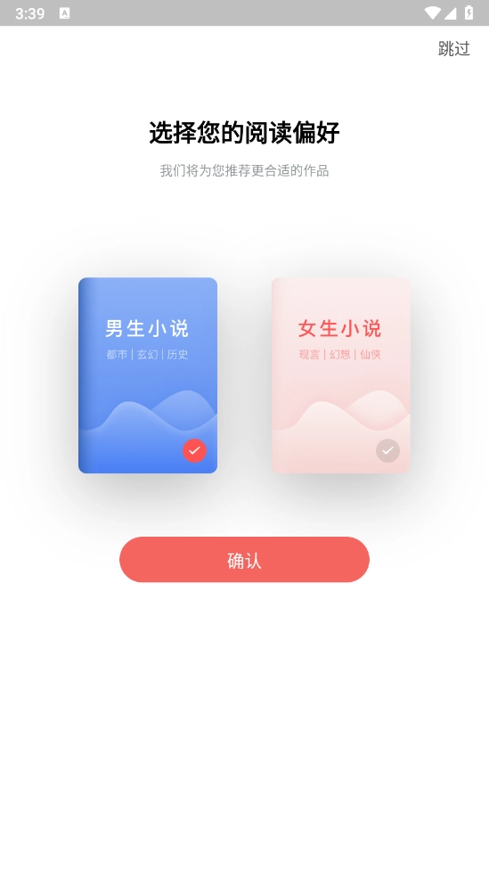 安装好书生搜索后,进入应用,选择性别以便为你更精准地推荐小说。