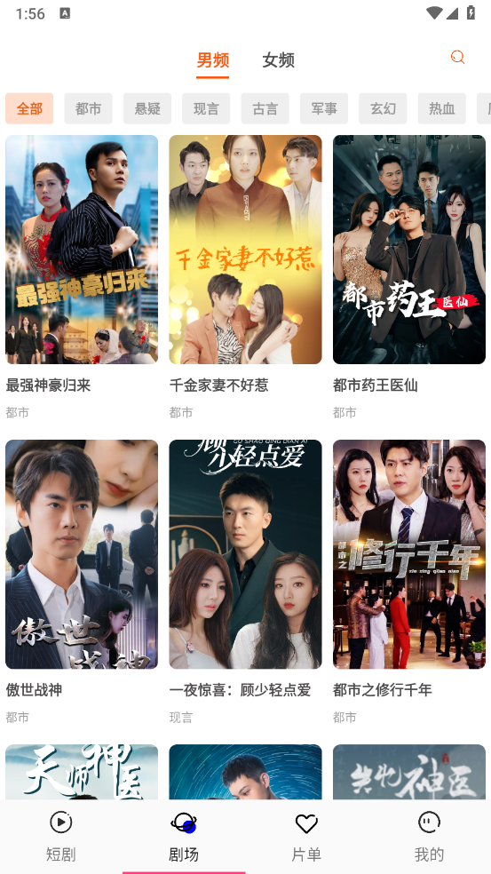 进入后,能看到丰富的短剧类型,涵盖都市、现言、悬疑等多种类别。