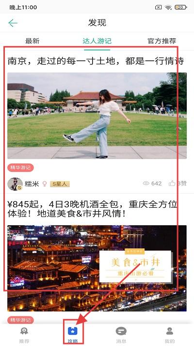 2、点击【攻略】可以查看感兴趣的地方的攻略。