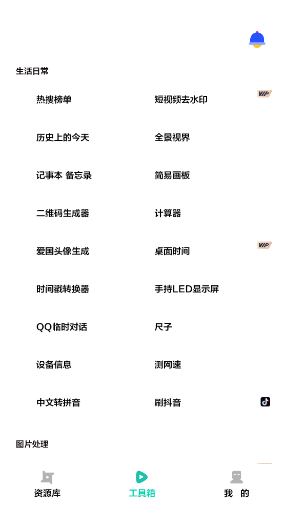 进入“工具箱”页面后,通过上下滑动屏幕,就能挑选出自己需要的工具。