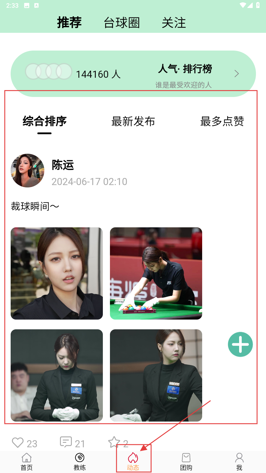 3、点击【动态】可以查看其他人发的帖子,还可以进行评论互动。