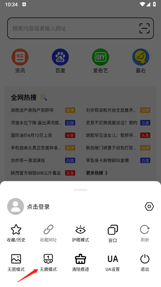 在搜索框中输入关键词或者网址页面,点击搜索。