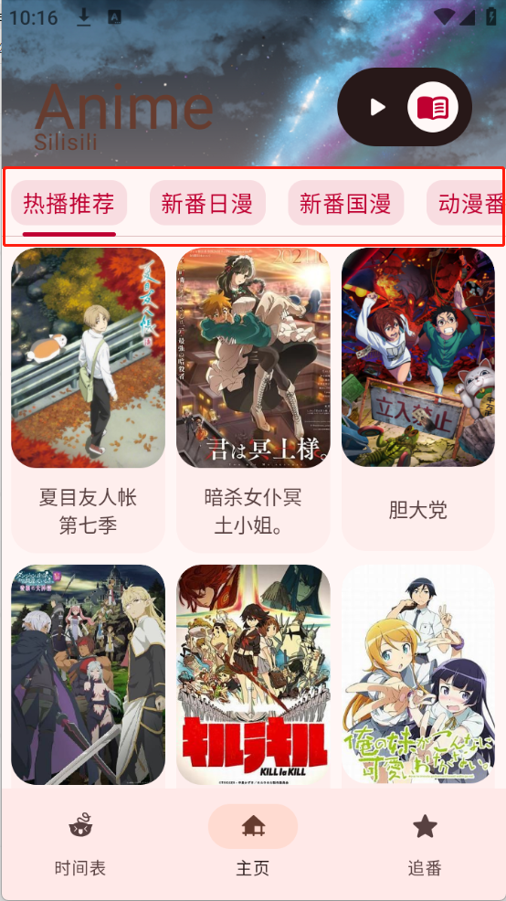 回到首页,可以在“追番”页面查看收藏的动漫。