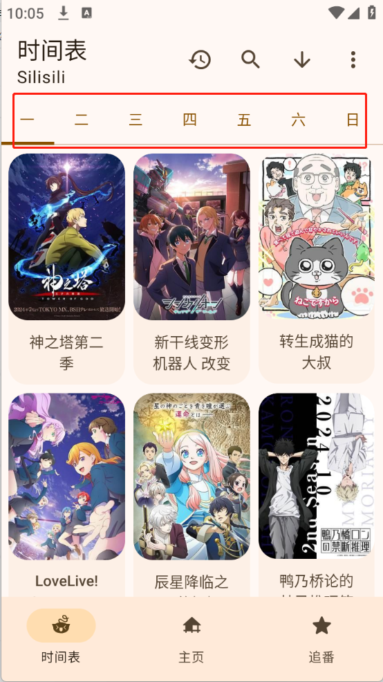 时间表页面为用户呈现每日动漫的更新动态,方便大家随时了解自己喜爱的动漫更新情况。