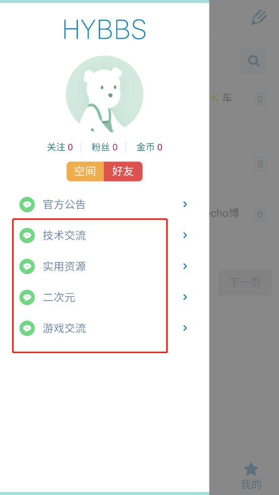 进入首页后,点击左上角的三条横线图标,会看到多个版块,包括技术交流、实用资源、二次元和游戏交流等。