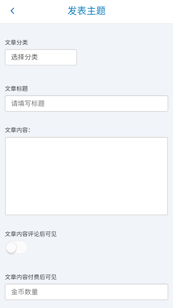 进入该平台后,用户能够发布帖子,需要填写文章分类、标题以及文章内容等信息。