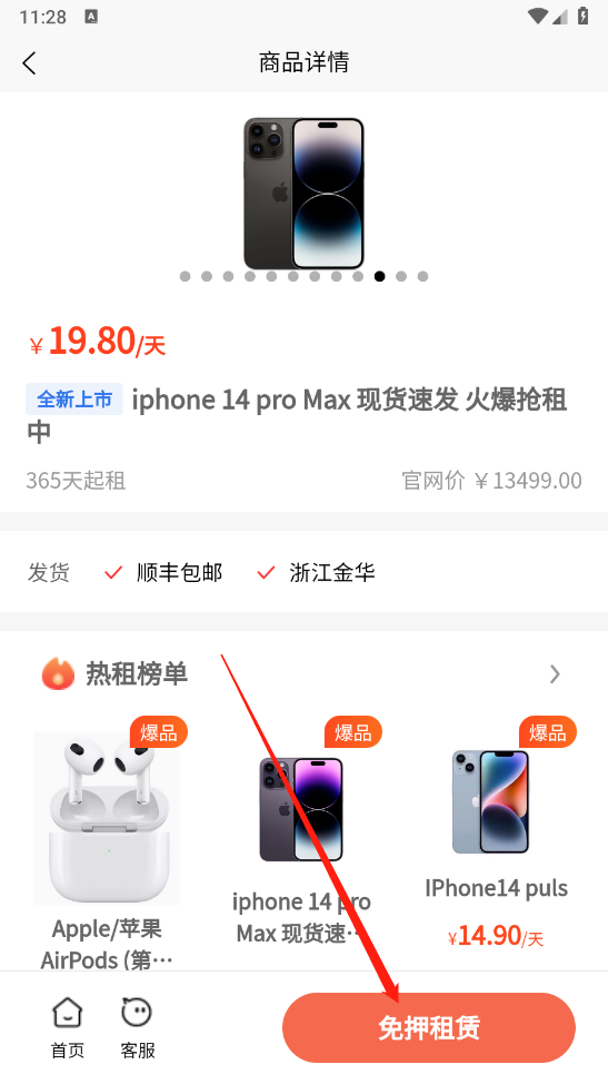 挑选好自己心仪的产品后,点击“免押租赁”按钮即可。