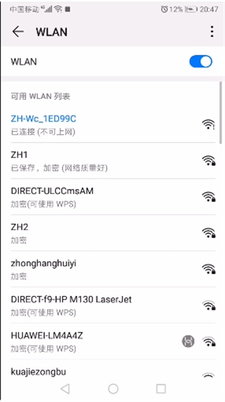 打开手机网络设置,连接ZH-W开头的WIFI信号
