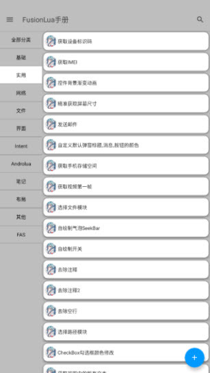 FusionLua手册是拾玖所FA手册的重制版,它在旧版FA手册的基础上新增了不少功能,网络、界面、笔记、布局、文件等各个板块都能找到对应的编码信息,你可以在软件里编写LuaJava代码,这款代码编辑器的功能十分强大!