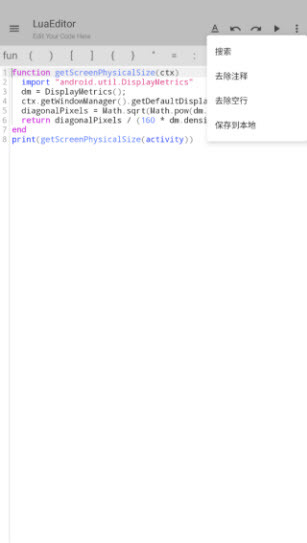 点击代码界面右上角的“三点”按钮,还能对代码进行更细致的处理,比如去除注释、删除空行、保存到本地等操作。