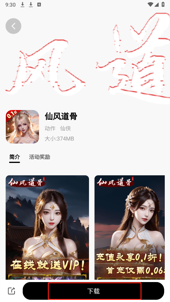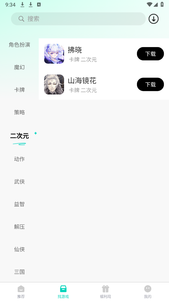 打开软件后,首页和找游戏板块都汇聚了大量游戏资源,涵盖仙侠、射击、动作等多种类型。