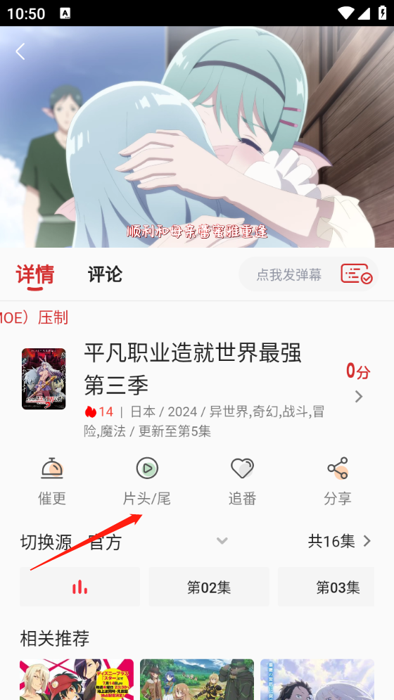 找到想看的动漫后,直接打开并选择集数就能播放,要是播放失败还能切换线路。