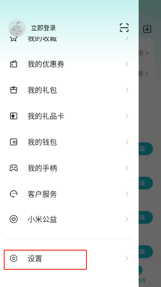 打开小米游戏中心,在我的页面点击【设置】按钮。