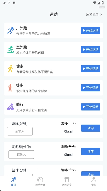 支持用户上手操作记录工具,为用户记录各类运动项目的运动时长;