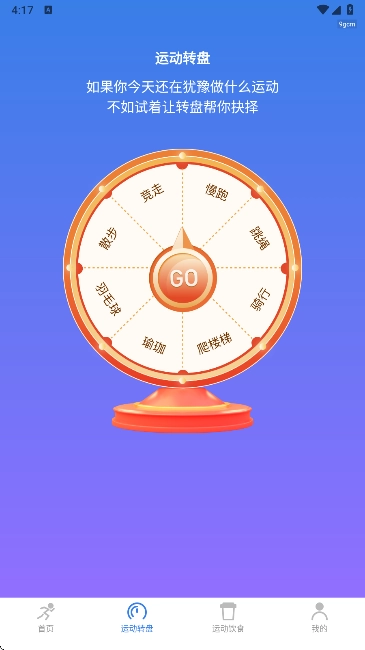 软件中可以支持用户在线转转盘,帮助用户选择运动项目做出决定;