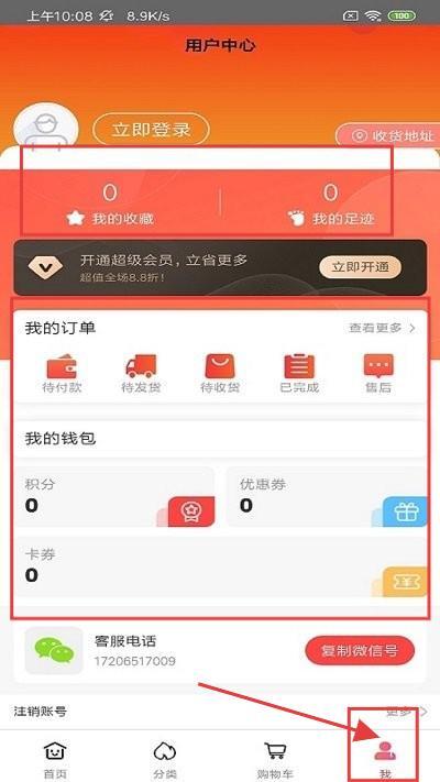 3、在【我的】界面可以进行查看收藏、订单等。