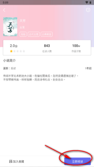选择一本小说打开,点立即阅读。