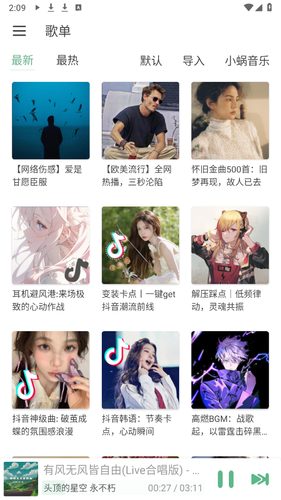 进入首页,在歌单栏目汇集了众多的音乐资源。
