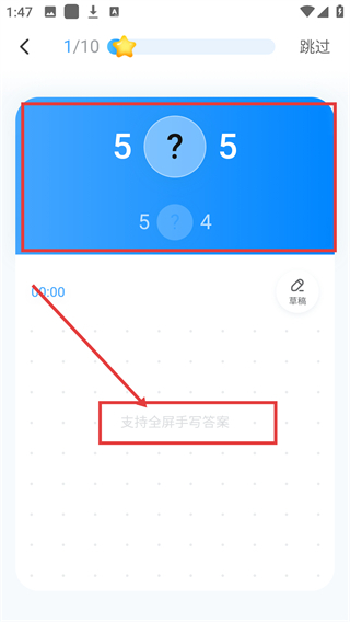 4、进入练习后,遇到数比大小题目,可在手写区域填写答案,系统会自动判定对错哦。