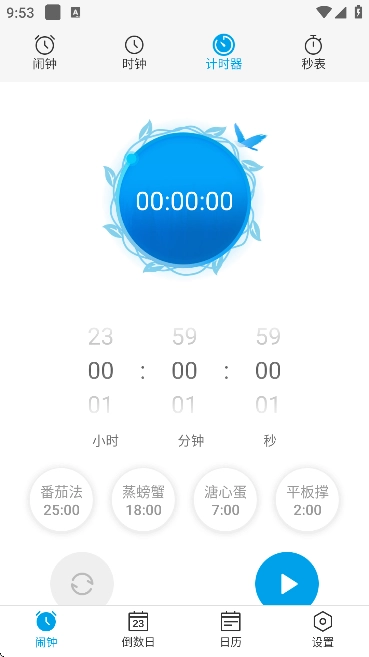 3、使用“计时器”功能设置最长24小时倒计时,支持暂停或重置操作;