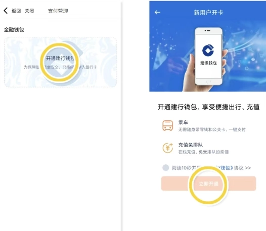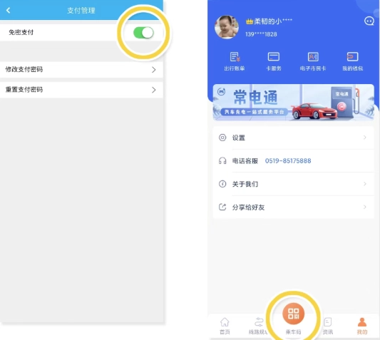 5、开户成功,点击已开通的金融钱包,选择【支付管理】开启【免密支付】并进行充值,即可使用【乘车码】享受扫码乘车;
