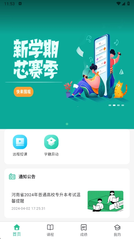 1、在本站安装联大学堂打开,进入到首页可以浏览到基础公告