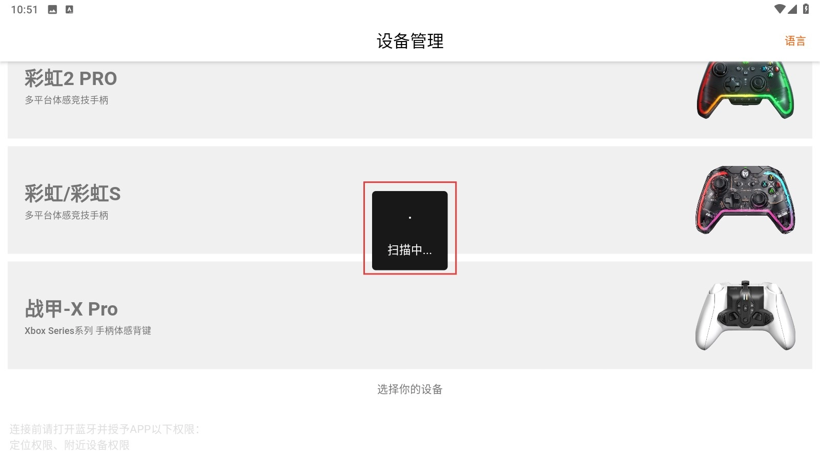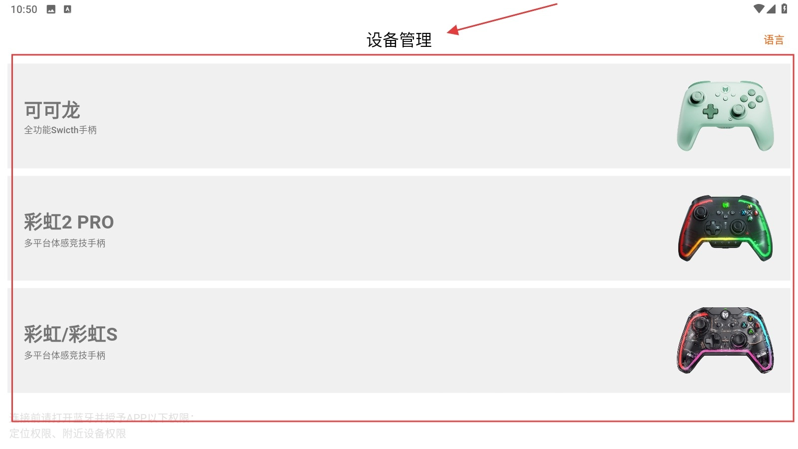 进入【设备管理】界面,挑选像【可可龙】这类需要连接的手柄设备。