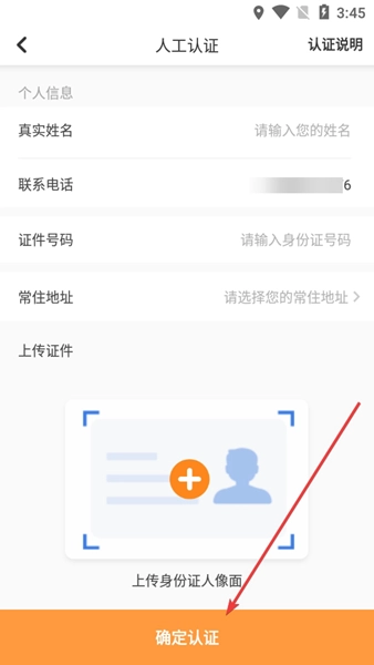 4、输入信息后点击下方的按钮完成认证