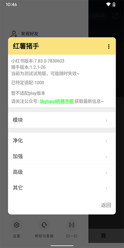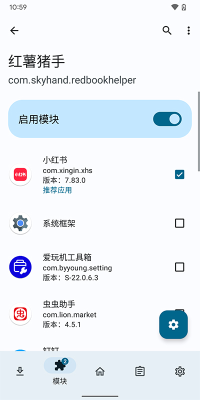 在框架管理器里点击“红薯猪手”,启动该模块,然后选择小红书来进行应用。
