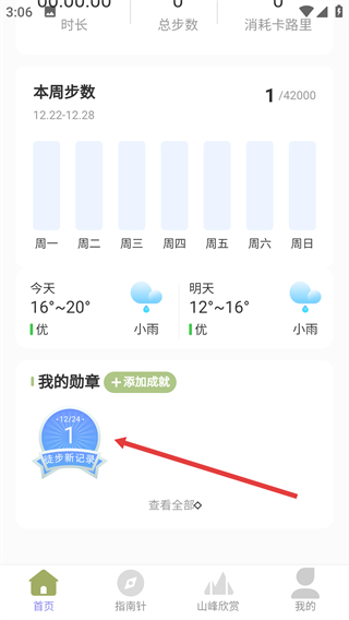 4、成就保存完成后,首页【我的勋章】区域会展示新增勋章,可直观查看已记录的所有个人运动相关成就。
