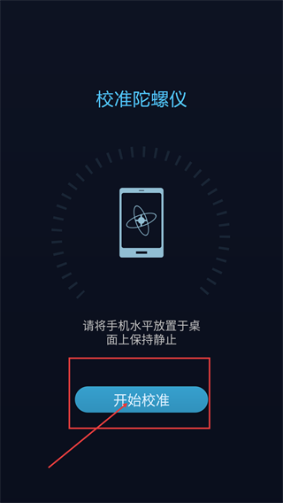 1、进入【校准陀螺仪】页面后,把手机水平放在桌面上并保持不动,接着点击【开始校准】按钮,这样就能启动陀螺仪的校准流程了。