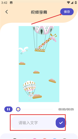 4、在视频字幕页面,于输入框填写文字内容并确认,点击【保存】可完成字幕添加,实现视频与文字的结合。
