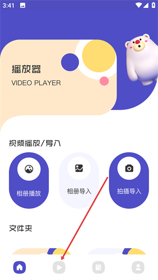 1、在播放器页面,可通过【相册播放】【相册导入】【拍摄导入】功能获取视频素材,为视频编辑提供源文件。