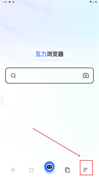2、在【瓦力浏览器】主界面,点击底部的菜单按钮,可打开功能选项列表。