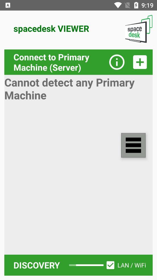 在电脑上完成spacedesk软件的安装后,只要处于同一局域网环境下,软件就会自动搜索并识别到这台电脑。要是没有搜索到,也可以点击界面中间的加号按钮手动添加,此时需要输入的IP地址就是电脑端软件里显示的那个IP。
