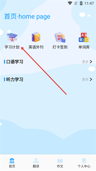 在应用首页找到【学习计划】的入口并点击,就能进入书库的词书选择界面。