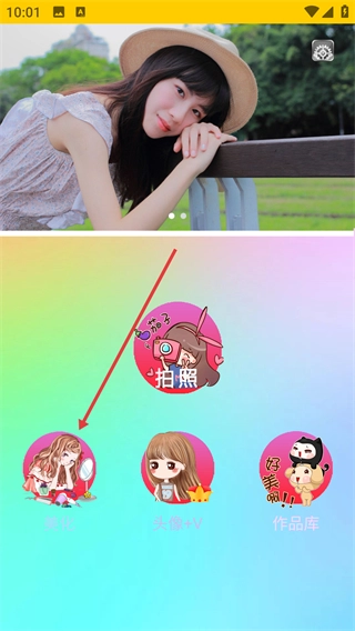 在图片美化类应用的界面中,点击【美化】选项,即可进入用于选择图片的“我的图库”页面。