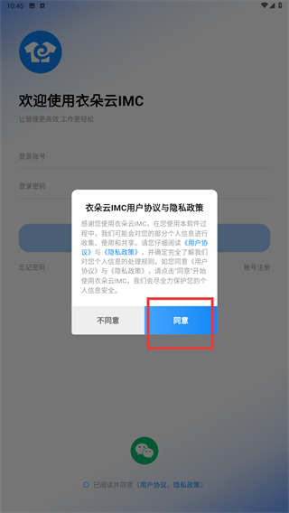 在阅读《衣朵云IMC用户协议与隐私政策》后,点击【同意】按钮,即表示您确认接受该协议,以便继续使用相关服务。
