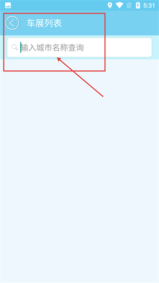 进入【车展列表】页面后,可利用顶部的【输入城市名称查询】搜索框,输入目标城市名称,从而查询该城市对应的车展相关信息。