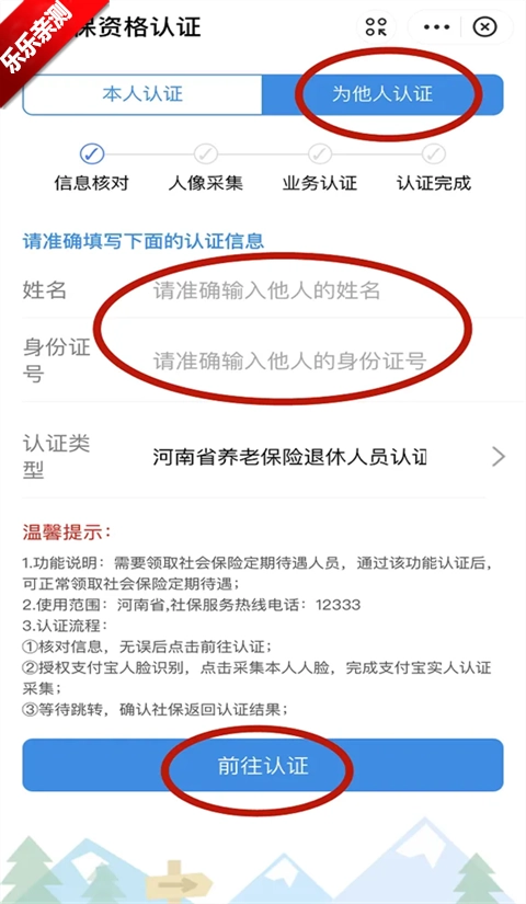 操作步骤与上述社保资格认证流程相同,区别仅在于第三步——点击“去认证”后选择“为他人认证”,随后按照提示操作即可完成。