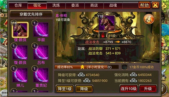 聊了这么多开源的办法,最后肯定得说说节流,不然银币再多也经不住花。游戏里银币主要花在哪儿?那还用问,全在各种装备的强化上!新手常犯的错就是把白装、蓝装强化到很高等级,但拿着这些低品质的装备,后期肯定要吃大亏。所以正确的做法是:白装和蓝装的等级尽量别升太高,多攒些银币,等拿到高品质装备了再集中升级。