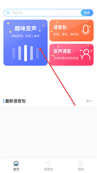 在语音工具类应用的首页,找到并点击【趣味变声】选项,即可进入变声功能的操作界面。