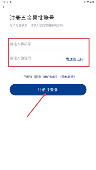 进入后续页面后,在【请输入手机号】处补充填写号码,点击【发送验证码】获取验证码并填入,最后点击【注册并登录】即可完成操作。