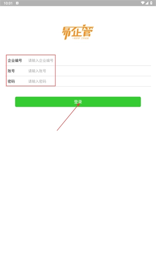 在对应的输入框中,依次填入【企业编号】【账号】【密码】,完成登录信息的填写后,点击【登录】按钮即可进入系统。