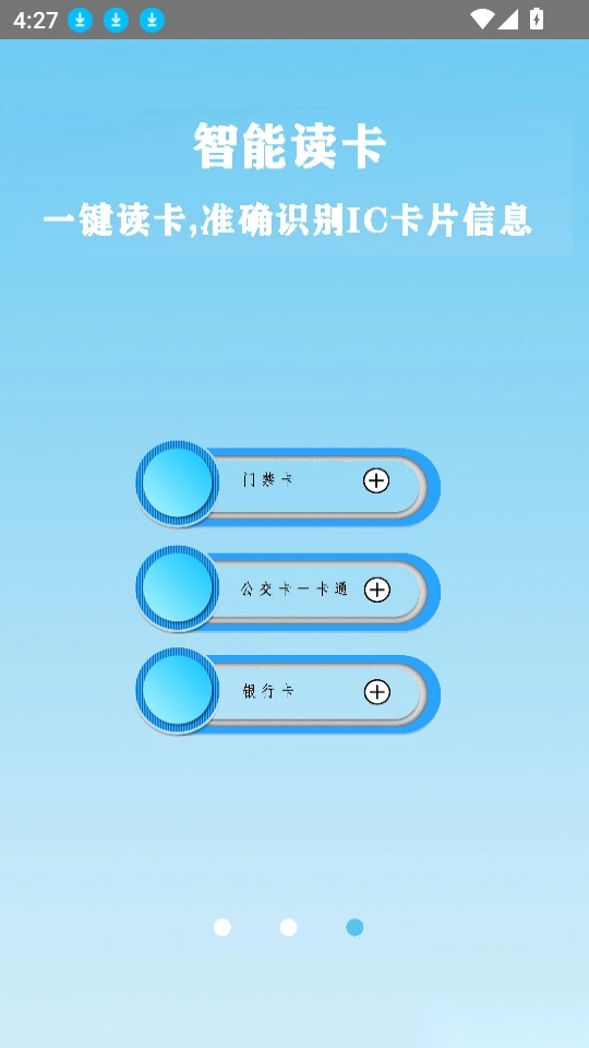 2、接着向右滑动界面,点击“门禁卡+”按钮,就能进入软件的NFC界面了。