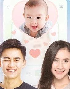 2、预测未来宝宝:上传父母照片合成可爱宝宝模样。