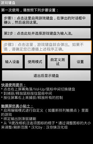 回到系统首界面后,把默认输入法改成游戏键盘,这样才能保证按键映射正常工作。
