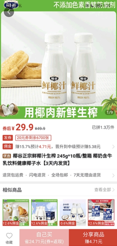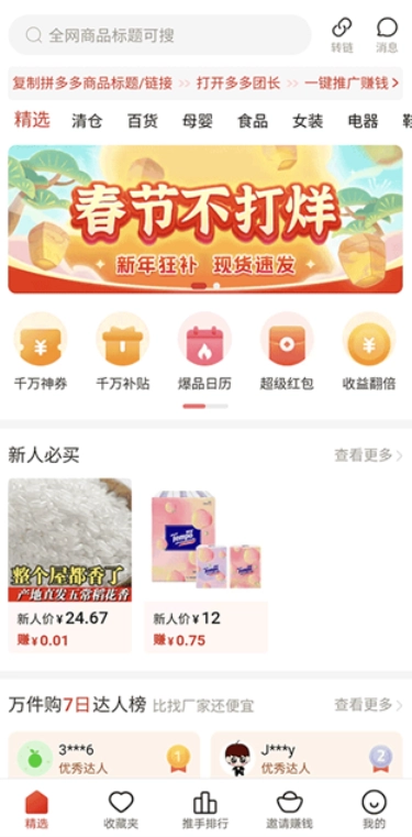 分享商品赚取佣金:用户能够把平台里的商品链接、图文内容一键分享至微信、朋友圈等社交平台。一旦有他人通过该分享链接完成商品购买,用户就能得到对应的佣金收入。